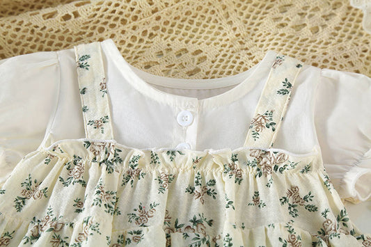 Mädchen Frühling und Herbst Neues Kleid Koreanischer Stil Modische Prinzessinnenkleid Fake-Zweiteiler-Trägerrock