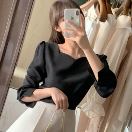 Chic Einzigartiges Pullover-Shirt mit Herzförmigem Quadratkragen