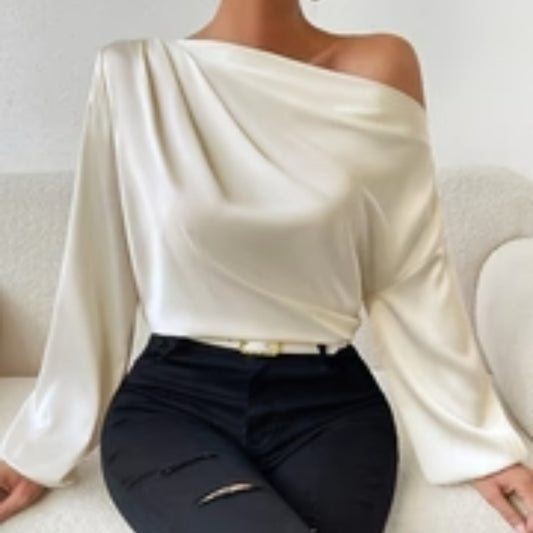 Damen Langarm-Shirt mit Schrägschnitt-Schulter und Figurbetonter Passform