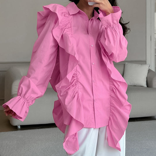 Französisches Hemd mit Reverskragen und Rüschen-Design