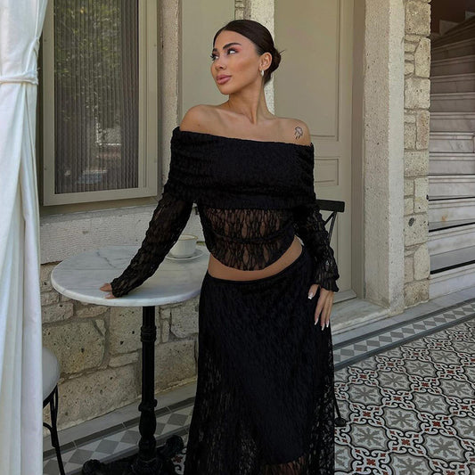 Modisches Damen-Top für den Herbst mit Spitze und schulterfreiem Design