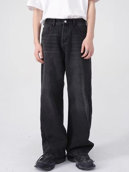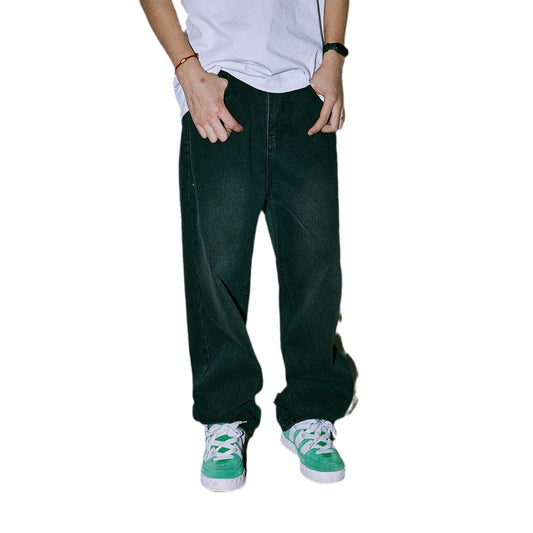 Ausgefranste Stitching Jeans Herren lose gerade gewaschene Hose