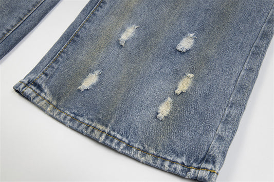Punk Used Look zerrissene Buchstaben Denim Hose Herren