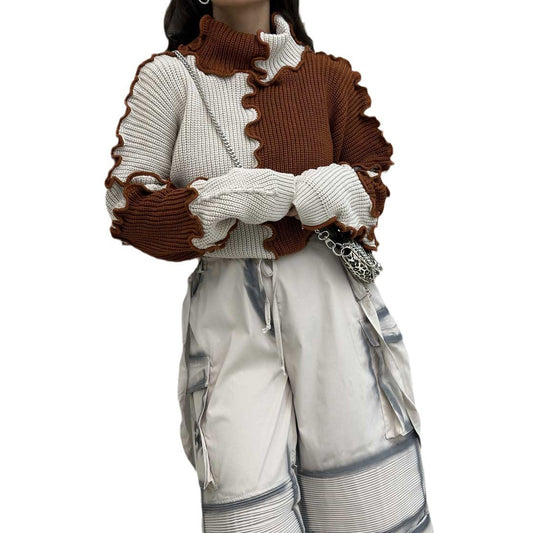 Lockerer Pullover Retro Farbkombination Turtleneck Pullover
