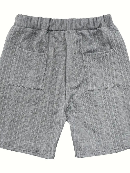2-teiliges Herren-Set: Jacquard einfarbiges Kurzarm-V-Ausschnitt-Hemd und passende Shorts mit Kordelzug, sommerliche Freizeitbekleidung.