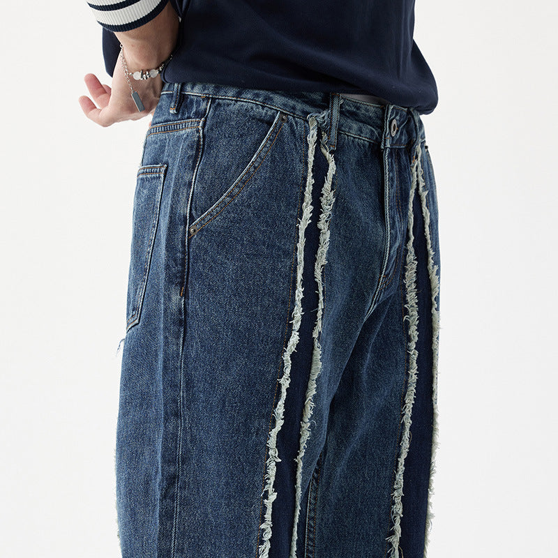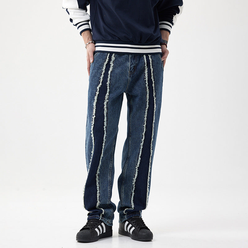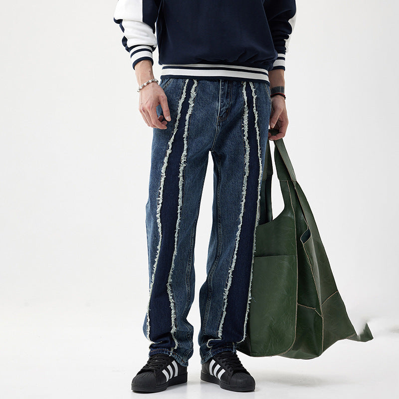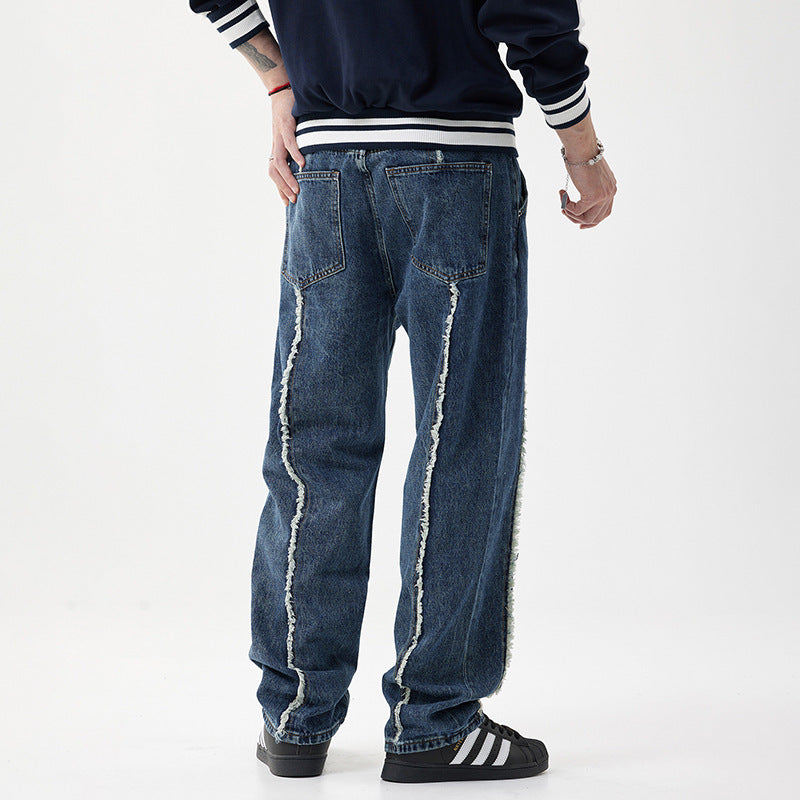 Ausgefranste Stitching Jeans Herren lose gerade gewaschene Hose