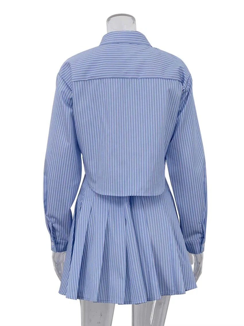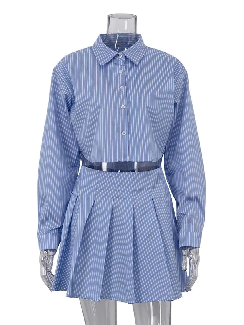 Elegantes, gestreiftes, zweiteiliges Set für Frauen in Mode, lange Ärmel