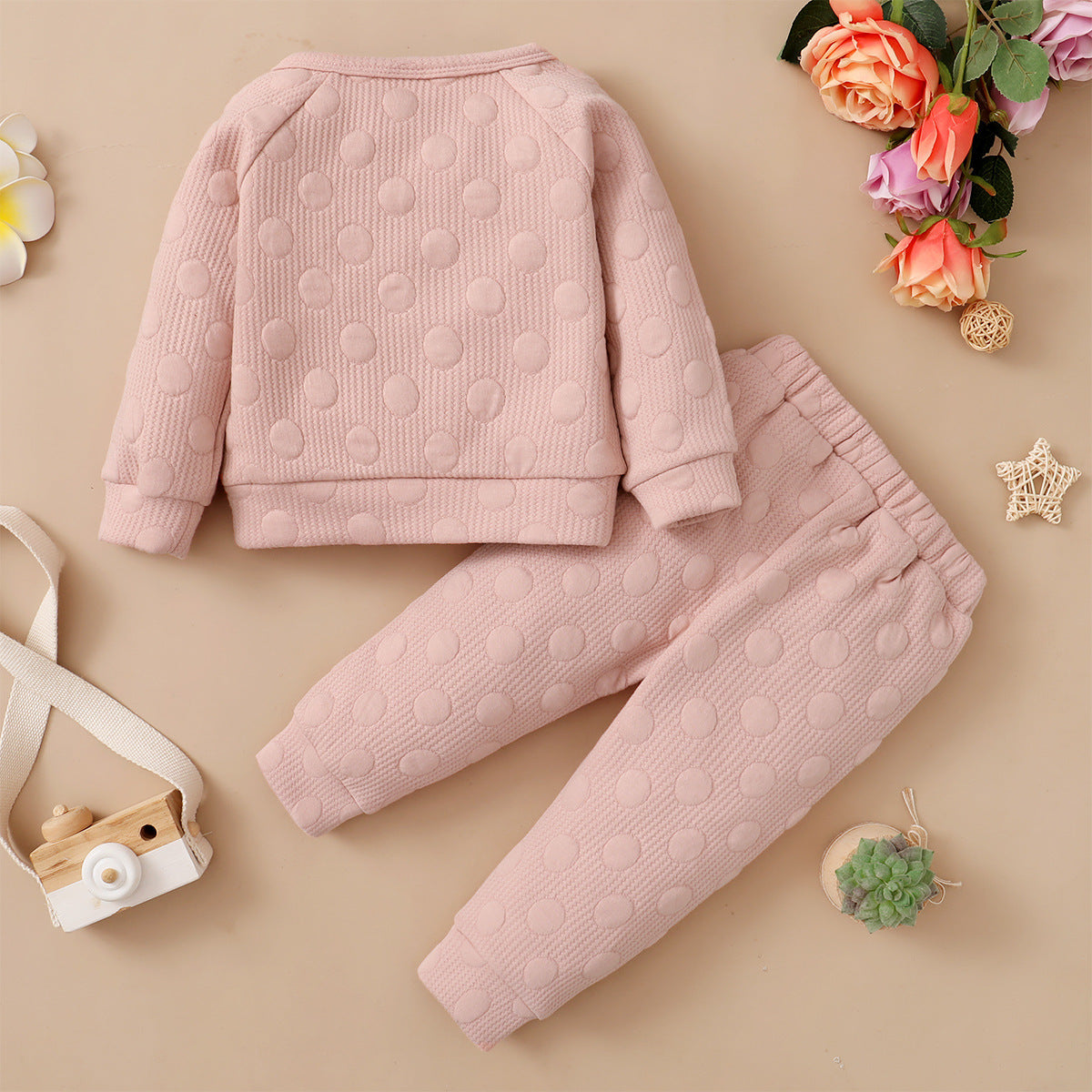 Frühling und Herbst Jungen- und Mädchenanzug Baby Bonbonfarben Einfarbig mit Polka-Dots Rundhalsausschnitt Langarmhosen Kinderkleidung
