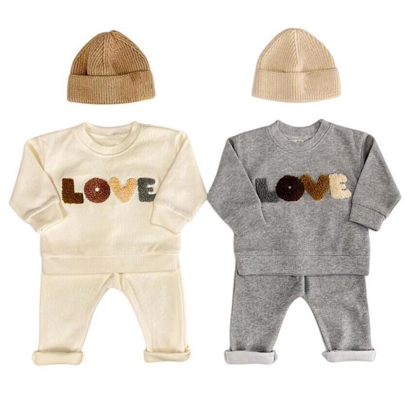 Kinderkleidung Jungen Pullover Anzug Beige Wolle LOVE Handtuch Stickerei Baby Kleidung Zwei-Teiliges Set