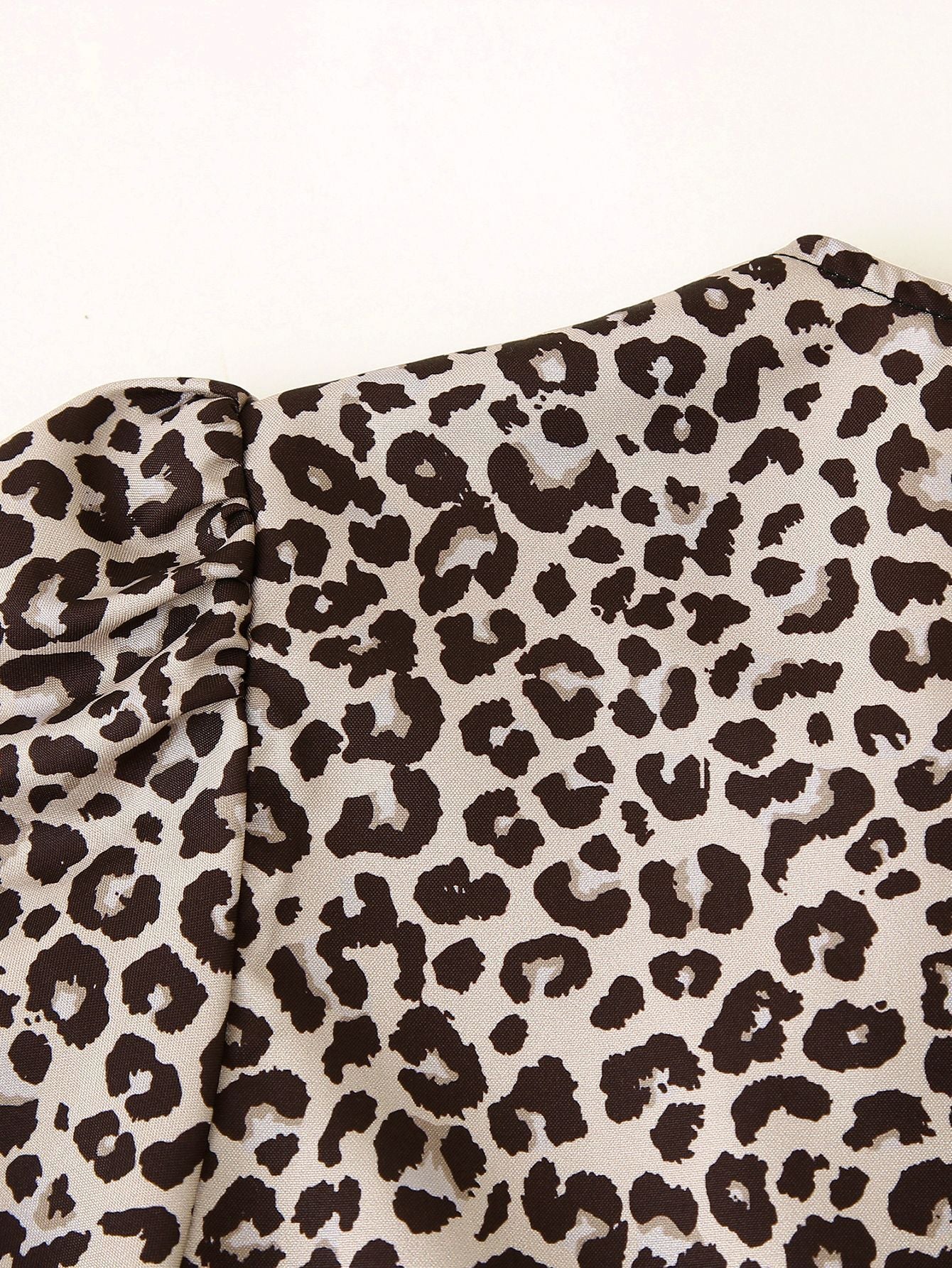 Leopard Print Hollow Lace Up Bubble Sleeve Shirt For Women's Top