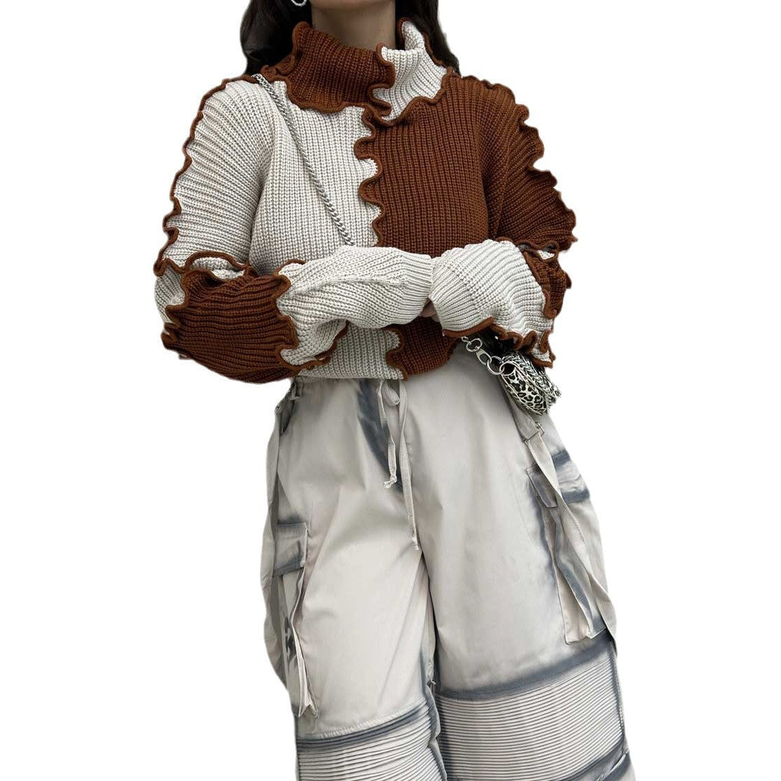Modischer Fadenrand Großer Farbblock Kontrastfarbiger Pullover