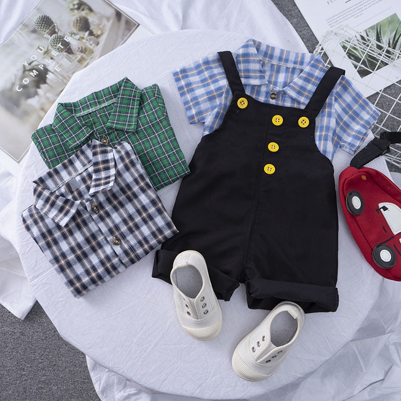 Neuer Sommer Jungen Kinderkleidung Koreanischer Stil Trägeranzug Kurzarm Zweiteiliges Set