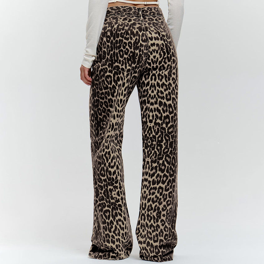 Sommerliche Retro Street Style Lockere Niedrig-Taillen Leopard-Print Hose – Vielseitige Baumwollweite Bein-Hose