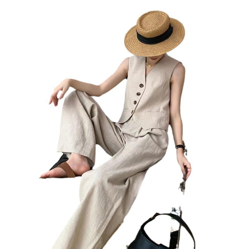 Zweiteiliger Anzug für Damen Sommer ärmellose Weste mit weitem Bein