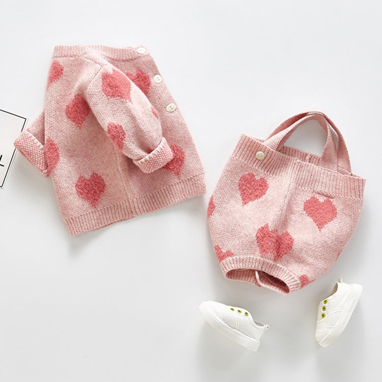 Farbe: Strap Strampler, Strickjacke